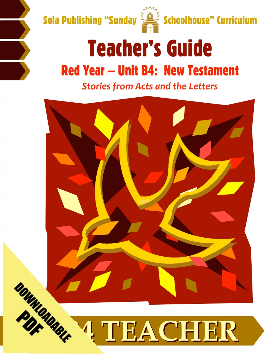 This downloadable PDF Version of B4 Teacher's Guide, subtitled "Stories from Acts and the Letters" covers Bible stories from the New Testament Gospels; John, Acts, 1 Timothy and Revelation. You can purchase the matching downloadable PDF Lesson Book HERE.
